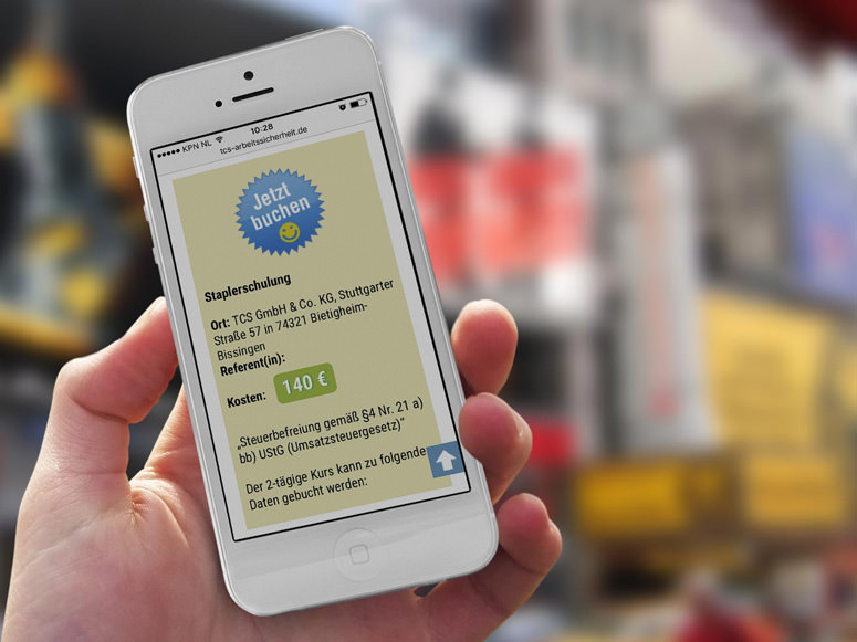 The website (tcs-arbeitssicherheit.de) of the german company provides the user with the possibility to book and pay trainings online. E.g. forklift trainings, chainsaw classes and seminars on how to execute safety instructions etc.